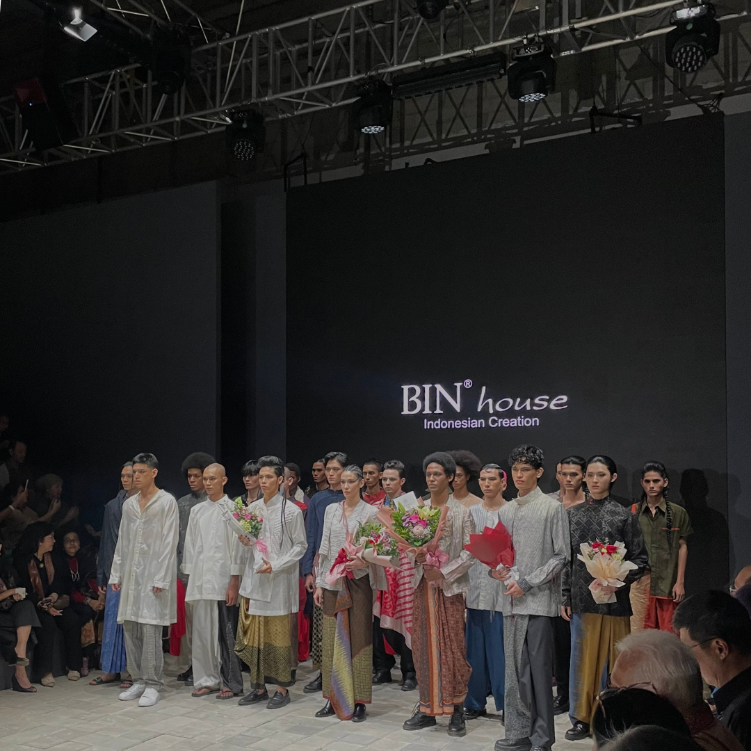 Koleksi yang terdiri dari 24 look ini menyajikan perpaduan apik antara desain kontemporer dan elemen tradisional. Penggunaan bahan-bahan lokal seperti tenun dan batik yang menjadi ciri khas BINhouse, memberikan sentuhan autentik pada setiap busana. Dalam panggung PIMFW 2024, BINHouse menampilkan dominasi warna netral seperti hitam, putih, dan abu-abu menciptakan tampilan yang elegan dan maskulin, namun tetap diimbangi dengan aksen warna cerah dan motif etnik yang khas.
