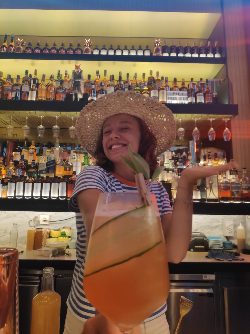 Hahaha... I am going to tell you the one that I didn't made at the bar, but the one that I made when I was young, even when I wasn't even allowed to drink. Hahahaha... Well, in Belarus you are allowed to drink at the age of 18, but of course when you go this party in highschool, you sneaked in and ask your older brother or sister to buy you something to drink. When I was 15, everyone was drinking Tequila Boom, so it's a combination of sprite and tequila, and you need to shake it, hit the glass on the table, and then drink it as fast as possible. So it's not about mixology thing, it's more about gettiing drunk. And I was inspired by this, when I got back home, we did the same combination, we used vodka and tonic with tangerine flavor, same idea, shake it, hit it on the table, and drink it. I named the drink "Youth".