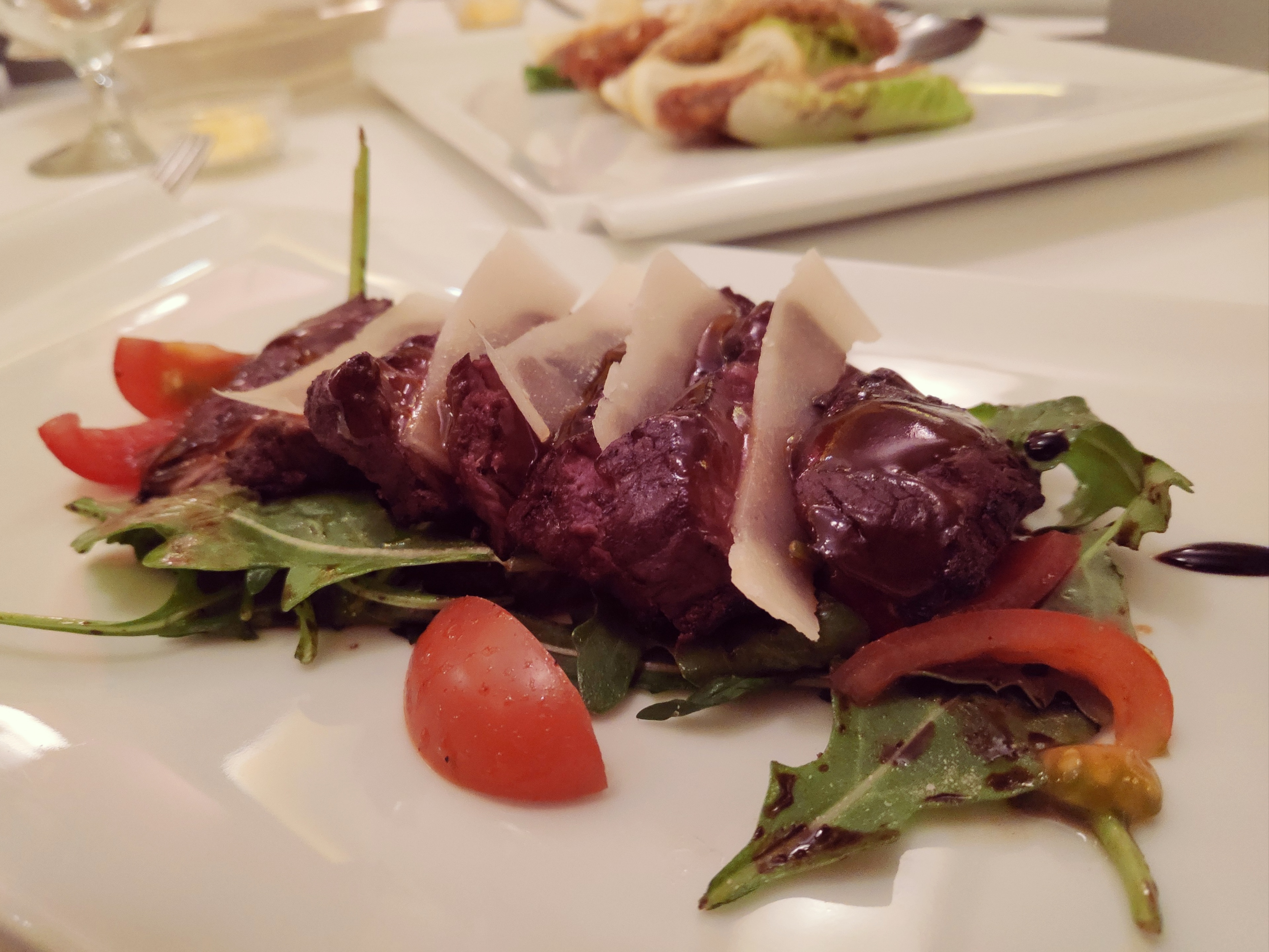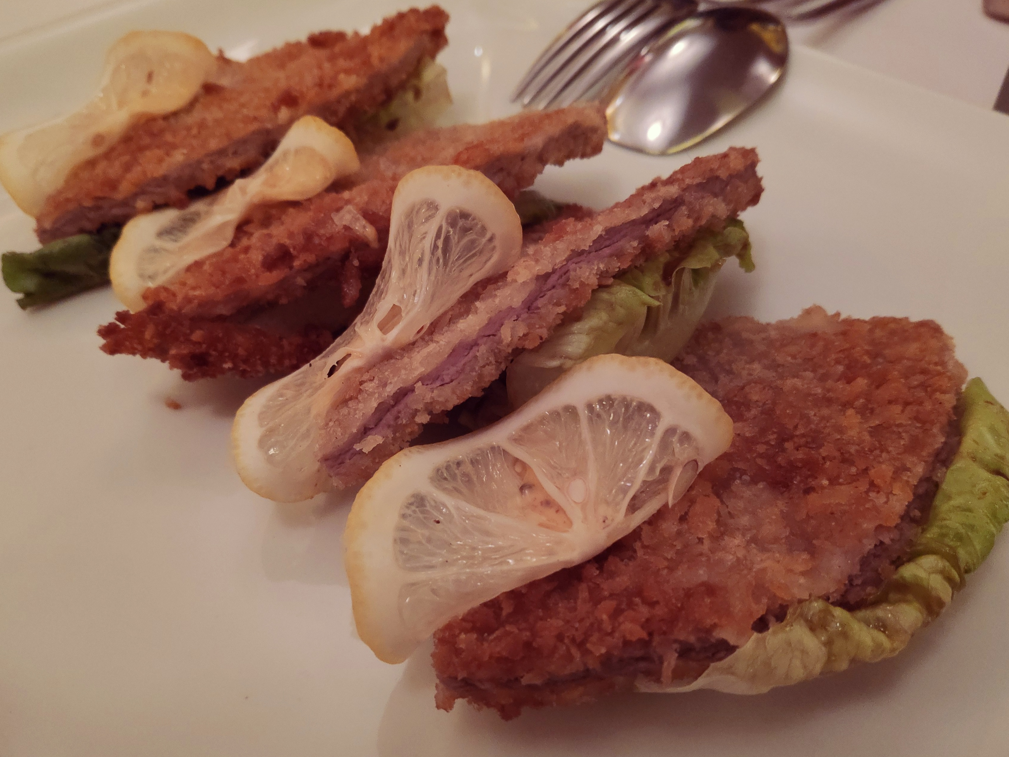 "Vitello Tommato" roasted veal with tuna sauce and capers, with gold flakes