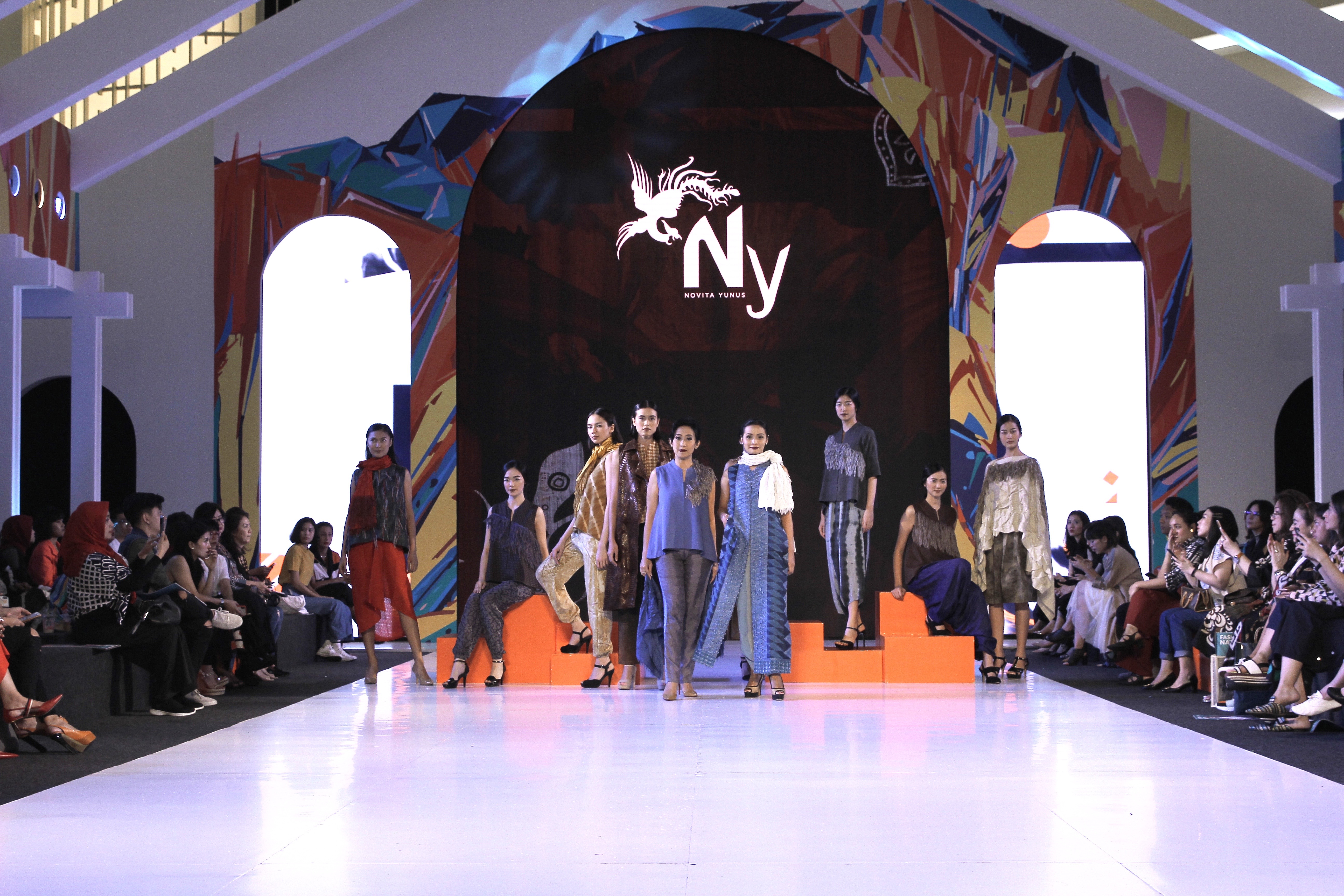 Pada Sabtu malam kemarin, tak hanya Purana yang menampilkan koleksi pakaian dari bahan tenun, hasil karya Nusantara yang kerap diadaptasi oleh dunia mode di Indonesia dari hari ke hari. NY by Novita Yunus adalah salah satu lini mode asal Tanah Air yang berhasil berkarya dan mempresentasikan tenun khas hasil tangan Indonesia. Beberapa di antaranya yaitu Tenun Sumba, Tenun Garut, Tenun Tuban Flores, Songket Bali, dan ada pula yang menunjukan teknik shibori, teknik yang juga digunakan oleh lini mode Purana untuk koleksi musim gugurnya.