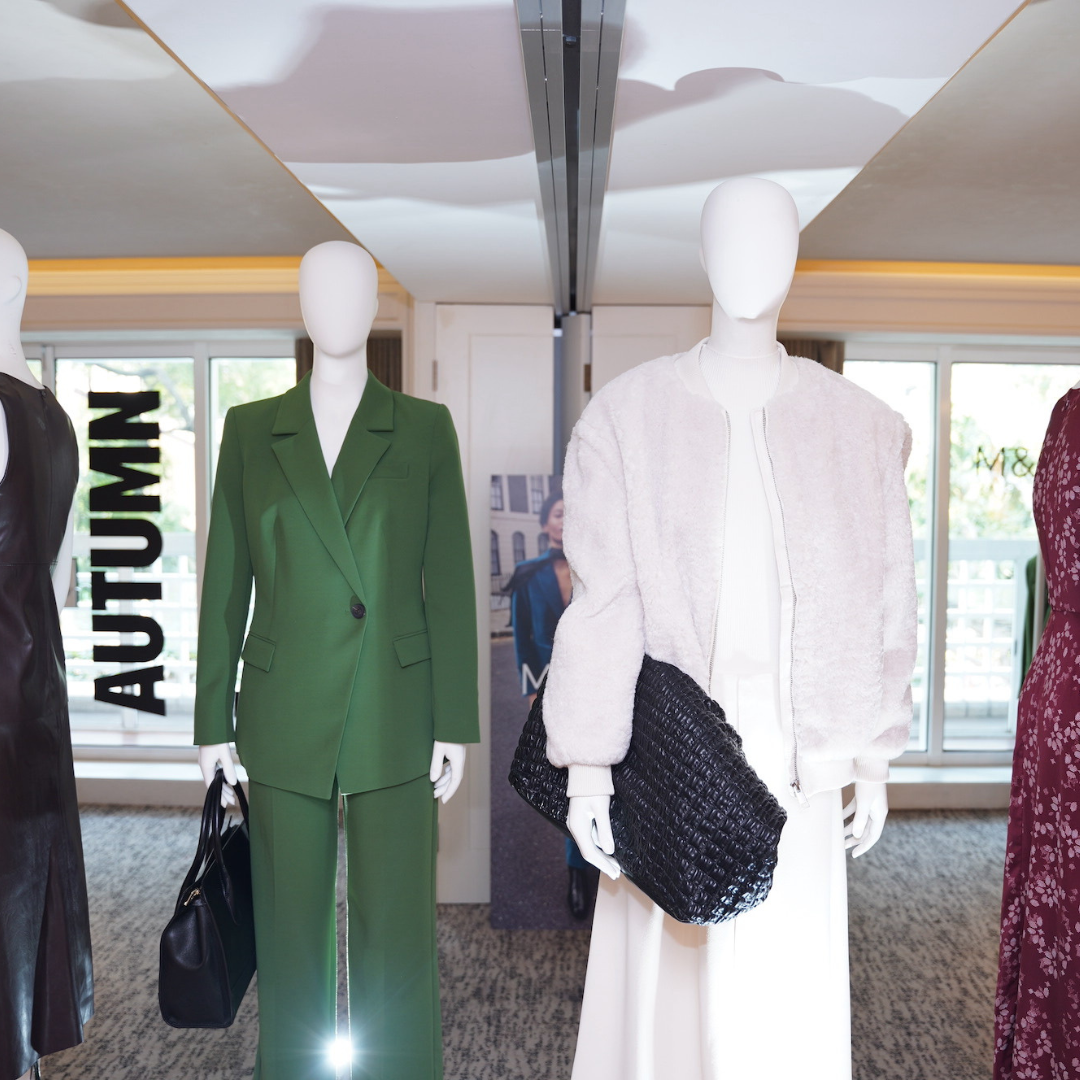 Dalam rangkaian pakaian wanita, M&S menampilkan berbagai pilihan busana, mulai dari mantel tebal, sweater rajut, hingga tas dan sepatu bertali untuk aktivitas harian. Warna-warna didominasi hijau hutan, jingga kemerahan, dan ungu yang berpadu abu-abu, hitam, putih serta warna-warna netral, menciptakan tampilan yang timeless namun tetap fashionable. Tak hanya itu, sentuhan motif plaid dan payet warna-warni memberikan nuansa vintage yang kembali populer tahun ini.