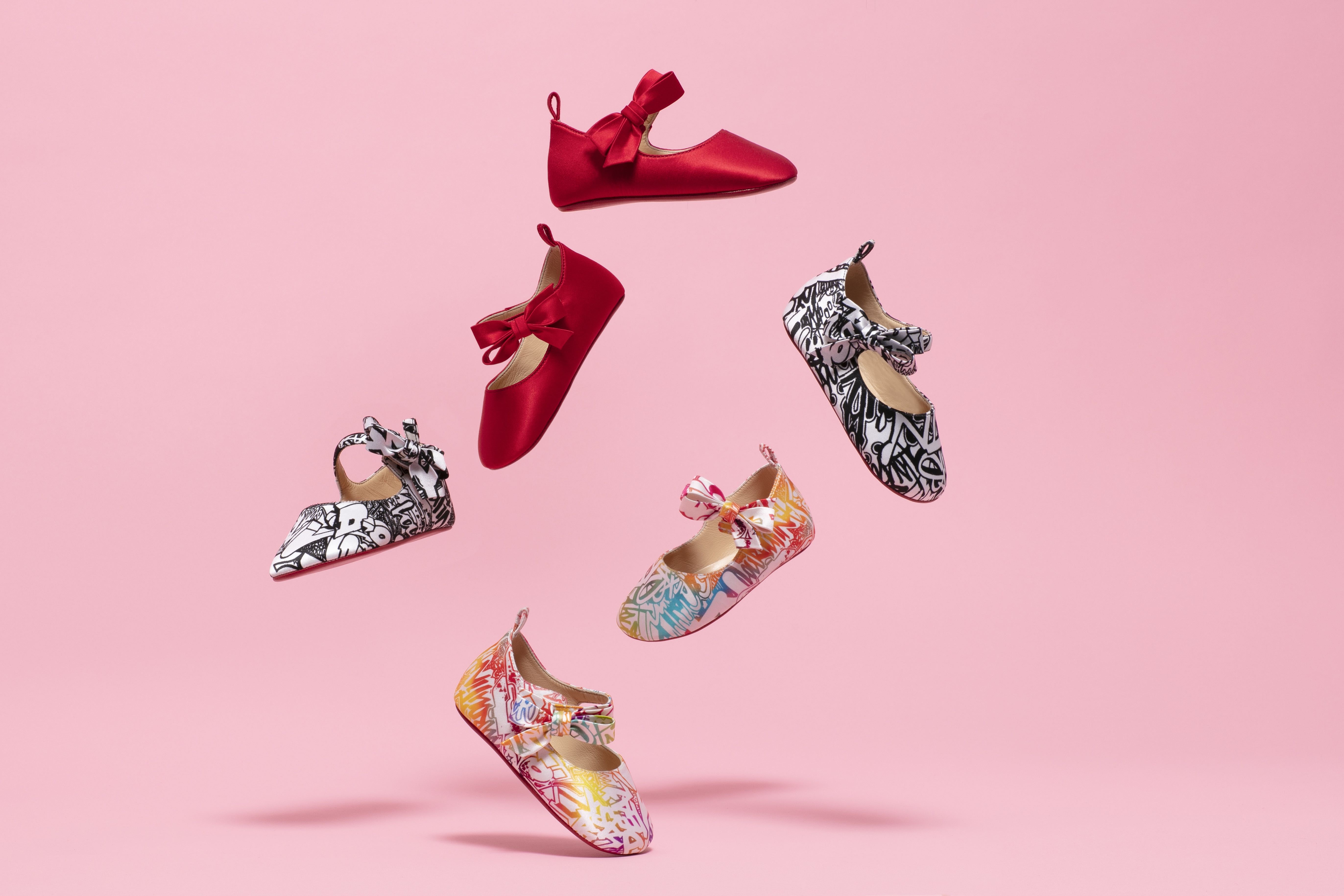 Terlihat dari desainnya, bahwa sepatu-sepatu imut ini dihias oleh pita buatan tangan dan tidak terlupa, RED-BOTTOMS! Sekarang Anda dapat berpasangan dengan si kecil dengan 'red-bottoms', karena warna yang tersedia ialah Red Loubi, Wallgraf black/white dan Wallgraf multicolor, dan semua sepadan dengan koleksi musim panas 2019 Louboutin untuk pria dan wanita.