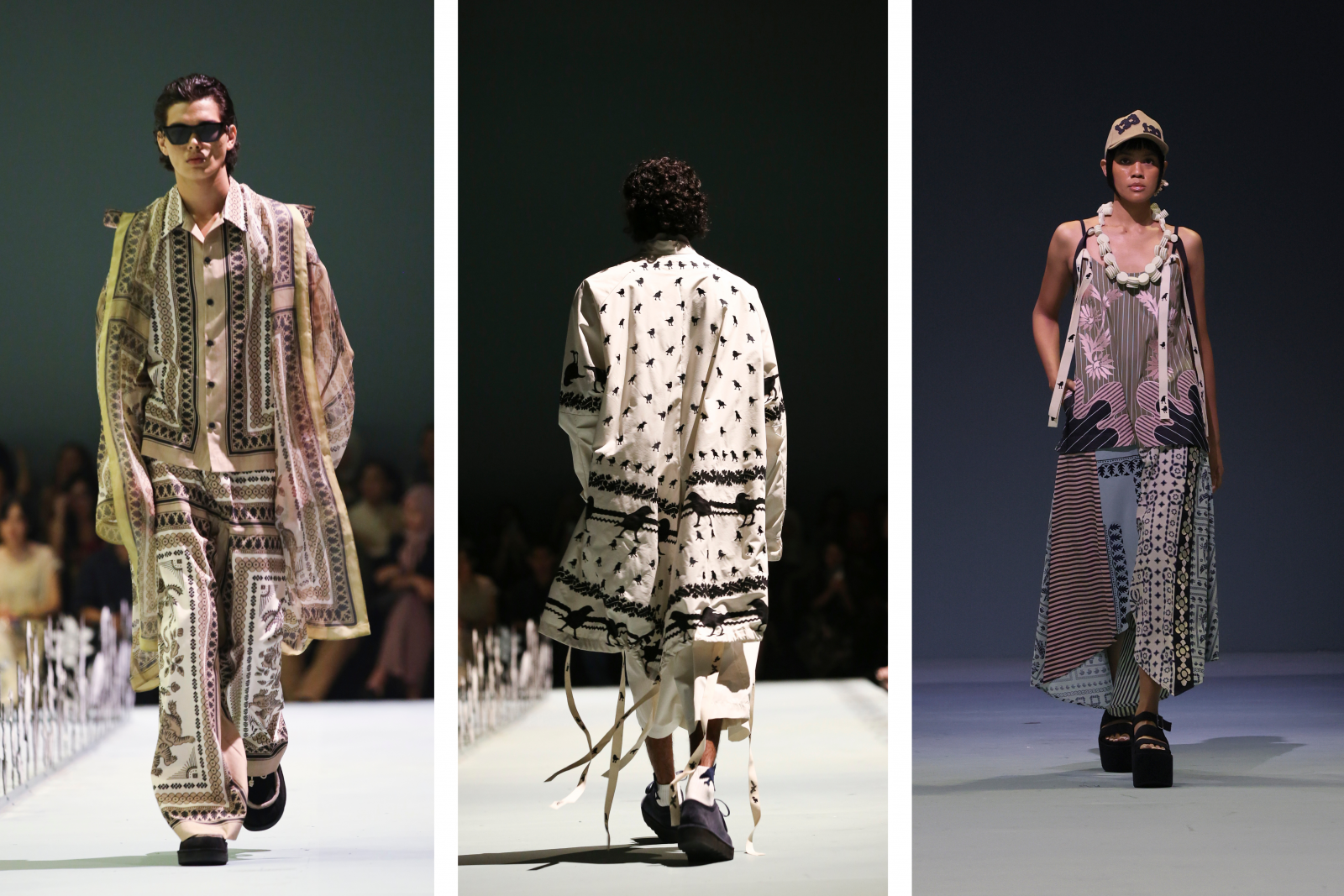 Menariknya, koleksi ini juga mengangkat tema hubungan manusia dengan alam, sebuah konsep yang sering diusung oleh Biyan dalam karyanya. Motif botani tropis dengan embroidery dan prints bermotif tumbuhan serta hewan-hewan kecil menjadi elemen dekoratif yang memperkaya setiap desain. Dipadukan dengan garis geometris dan ornamen khas, motif ini tidak hanya memberi sentuhan estetis tetapi juga menonjolkan kedekatan Biyan dengan alam, menciptakan karya yang bersifat reflektif dan bernilai filosofis.
