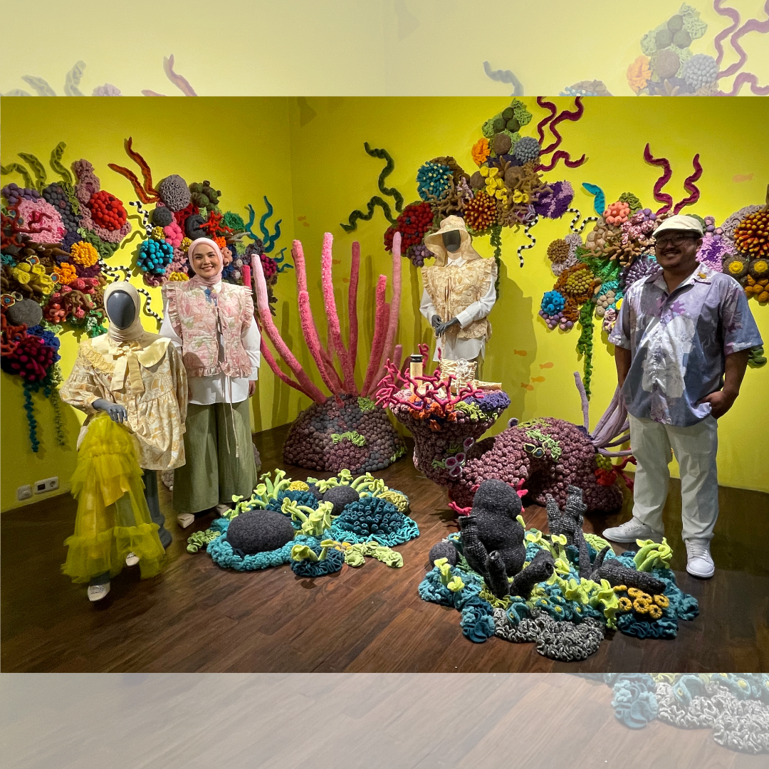 Ria Miranda bercerita, “Saya melihat banyak yang bisa dieksplorasi dari karya Mang Moel untuk diterapkan dalam ready to wear dan aksesoris RiaMiranda, dengan tema biota laut yang kaya akan ragam warna yang menarik. Karya Mang Moel juga menyadarkan saya untuk pentingnya menjaga lingkungan terutama biota bawah laut,”