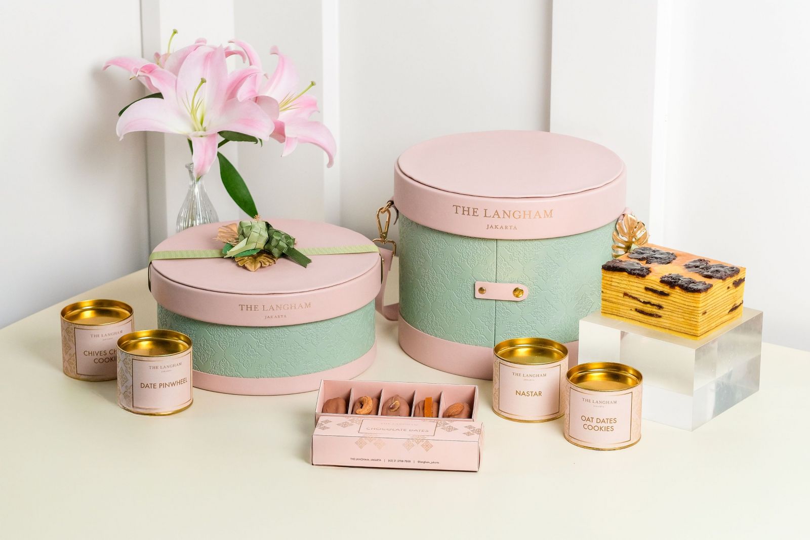 Untuk yang ingin berbagi kebahagiaan, hampers eksklusif The Langham bisa menjadi pilihan. Dikemas dalam silinder elegan dengan aksen emas, pilihan Eid Hamper dan Raya Hamper menyajikan beragam kue premium dan kurma Medjool berlapis cokelat, menjadikannya hadiah yang sempurna di bulan suci ini.