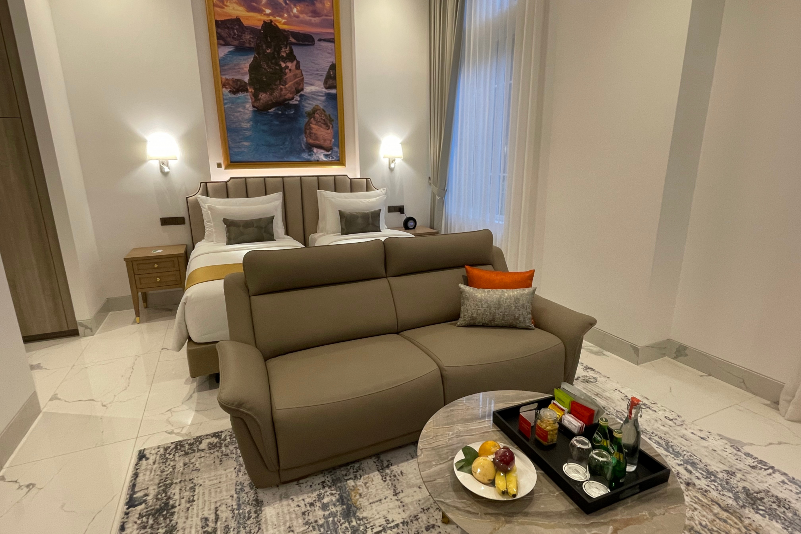 Memiliki 65 unit, The Grand Mansion Menteng bersama The Crest Collection menawarkan “A Story Behind Every Door,” tamu diharapkan bisa menikmati akomodasi mewah seperti di kerajaan dengan pengalaman yang tak terlupakan. Saya melihat banyak unsur gold yang digunakan di properti ini. Selain itu, setiap kamar juga memiliki gambar pemandangan alam yang berbeda-beda, baik pemandangan Indonesia atau luar negeri.