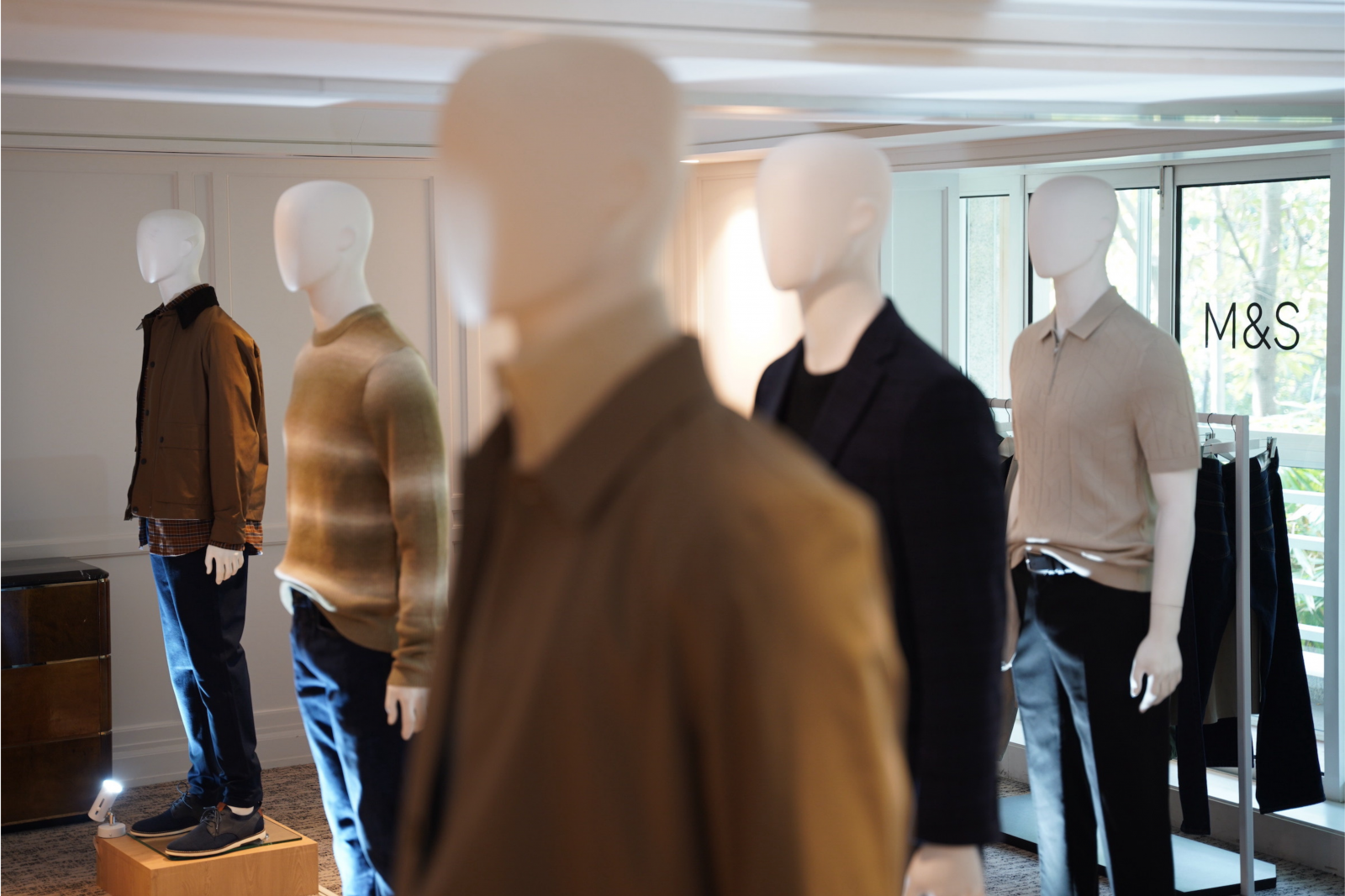 Dalam rangkaian pakaian wanita, M&S menampilkan berbagai pilihan busana, mulai dari mantel tebal, sweater rajut, hingga tas dan sepatu bertali untuk aktivitas harian. Warna-warna didominasi hijau hutan, jingga kemerahan, dan ungu yang berpadu abu-abu, hitam, putih serta warna-warna netral, menciptakan tampilan yang timeless namun tetap fashionable. Tak hanya itu, sentuhan motif plaid dan payet warna-warni memberikan nuansa vintage yang kembali populer tahun ini.