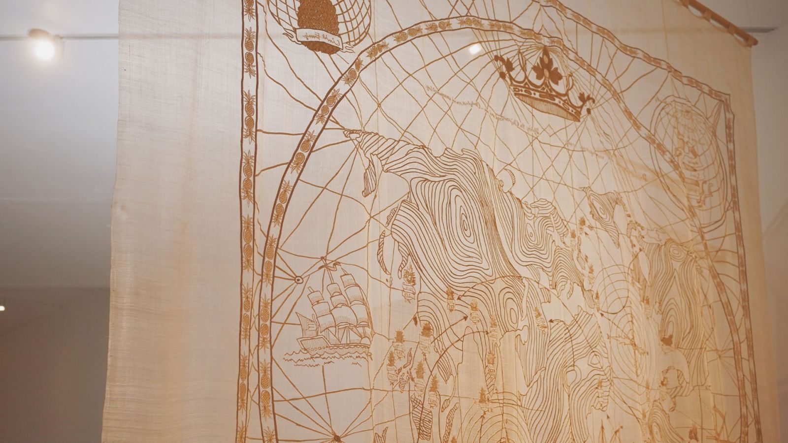 Banyak karya dalam pameran ‘Somewhere, Elsewhere, Nowhere’ yang dibuat dengan tangan, baik melalui proses lokakarya atau dikerjakan dengan bantuan tangan para artisan. Sebagai contoh, pisau pada karya Belok Kiri Jalan Terus (2017–2018) dibuat oleh pandai besi di Yogyakarta dan Filipina. Juga pada kain piña di karya See/Through (Series 1) (2019–2023). Kain piña adalah kain yang ditenun dari serat daun nanas. Nanas sendiri diperkenalkan oleh bangsa Spanyol selama masa pendudukannya di Filipina dan kemudian ditanam di seluruh penjuru Asia Tenggara dan Asia Pasifik. Piña juga secara langsung berkaitan dengan penjajahan, pendirian sistem tuan tanah dan buruh yang menciptakan perbudakan di antara isu-isu agraria lainnya. Karya ini mengilustrasikan komitmen mendalam sang perupa terhadap karya, sejarah, dan keilmuan yang dapat ditemukan di tangan para artisan, dan merefleksikan sejarah dari penaklukan, kolonisasi, kerja paksa, serta perbudakan manusia. Sedangkan sebuah karya baru yang dikomisikan oleh Museum MACAN adalah sebuah sayap pesawat berskala nyata yang terbuat dari 92 sangkar burung yang disusun seperti puzzle.